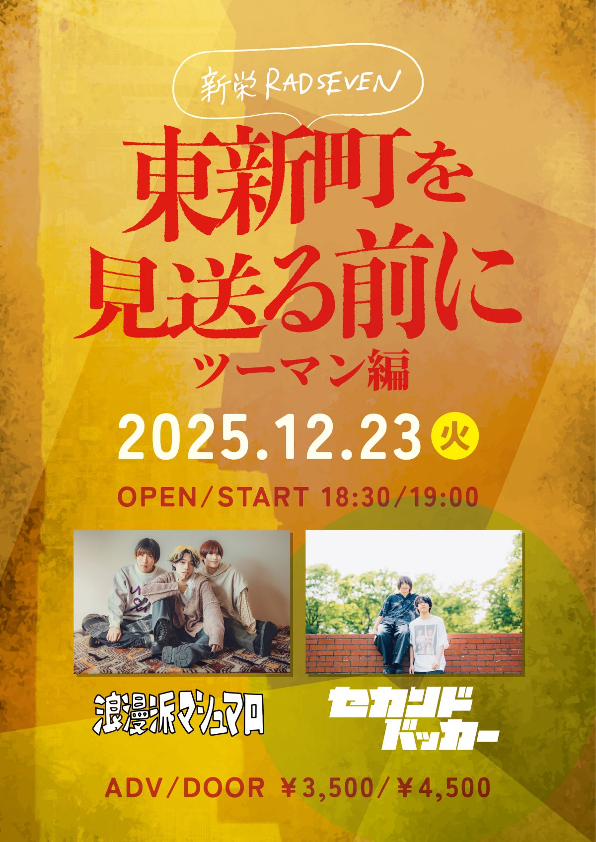 前売り:¥3,500 当日:¥4,500 Drink:¥600 -